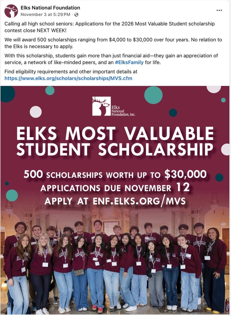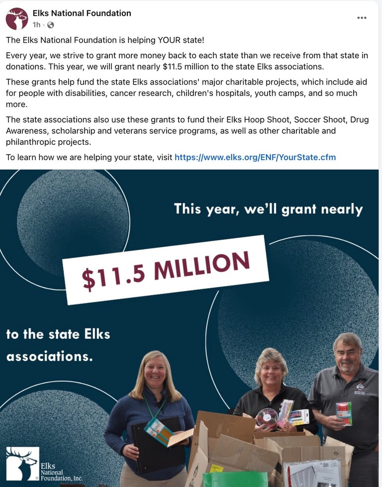 Click the socail medial buttons below to stay connected with the Elks National Foundation